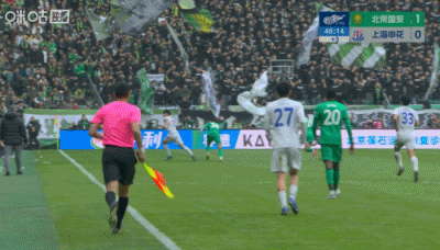 这球出界了吗?边裁判申花球出边线,斯卢茨基疯狂抗议染黄